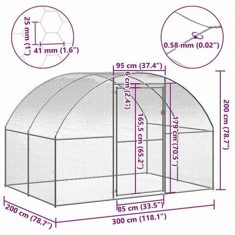 vidaXL 屋外鶏小屋 3x2x2 m 亜鉛メッキ鋼製動物&ペット用品 ペット用品 小動物用品 小動物 飼育・ケージ