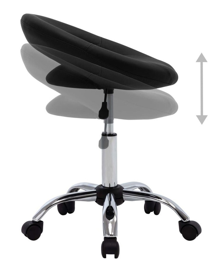 スタイリッシュで現代的なデザインが特徴のこの回転式ダイニングチェアは、リビングスペースに使える実用的なアイテムとして設計されています。お手入れが簡単な合成皮革で覆われたこのチェアは、最高の座り心地をお届けします。リビングルームで夕食を楽しんだり、読書をしたり、休憩したりするのにぴったりです。ガスリフト機構により、座席の高さを調節できます。シートは360度回転し、柔軟性に富み、キャスター付きで移動も便利です。さらに、この回転椅子はクロムメッキスチールで支えられており、さらなる安定性を確保しています。
