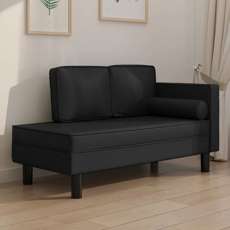 vidaXL シェーズロング クッション ボルスター付き ブラック 合成皮革 家具 ソファ