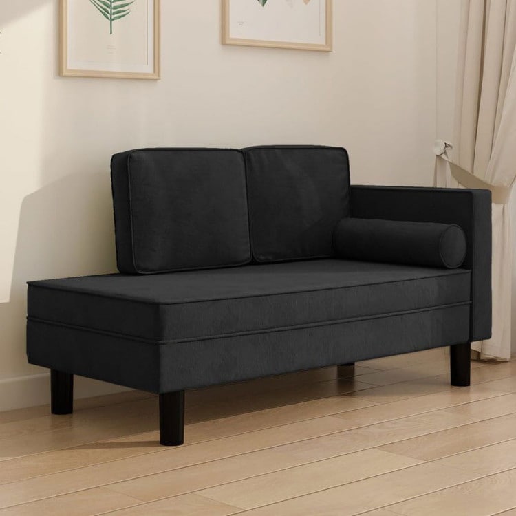 vidaXL シェーズロング クッション ボルスター付き ブラック ベルベット 家具 ソファ