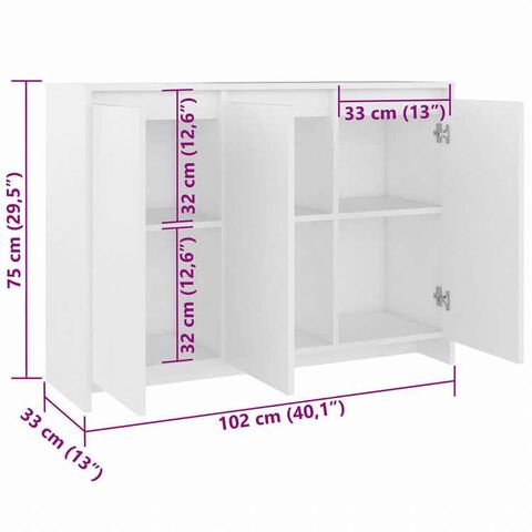 vidaXL サイドボード ホワイト 102x35x75cm エンジニアリングウッド家具 キャビネット&収納 サイドボード