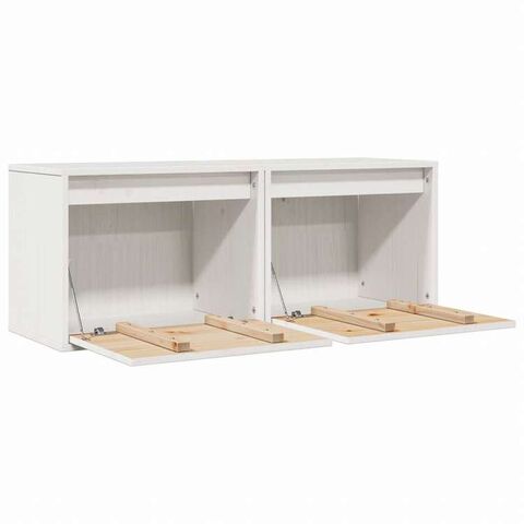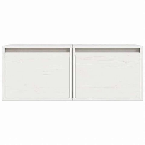 vidaXL ウォールキャビネット 2点 ホワイト 45x30x35 cm パイン無垢材家具 棚 壁面収納棚・壁面ラック