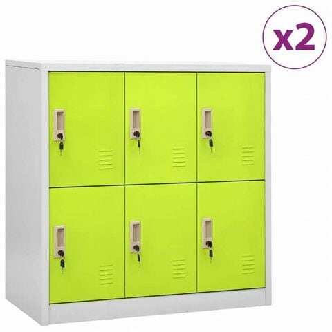 vidaXL ロッカーキャビネット 2点セット ライトグレー&グリーン 90x45x92.5cm スチール家具 キャビネット&収納 収納キャビネット・ロッカー