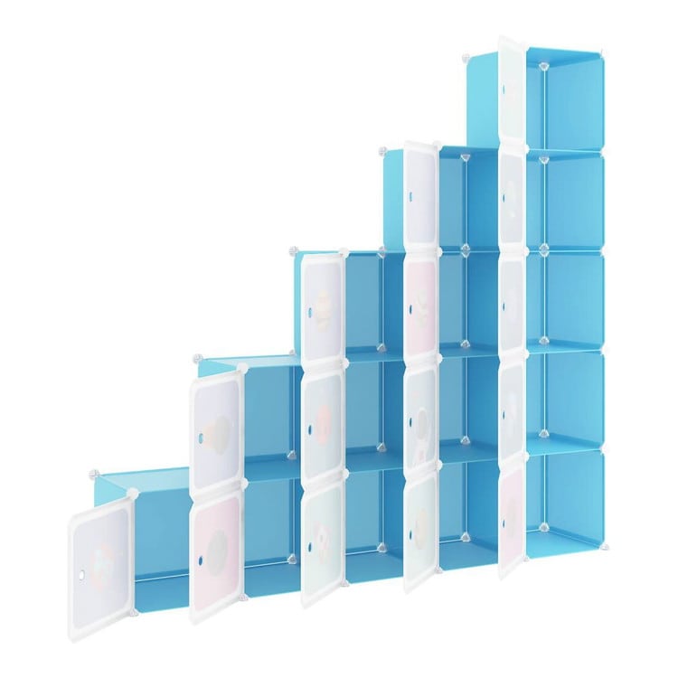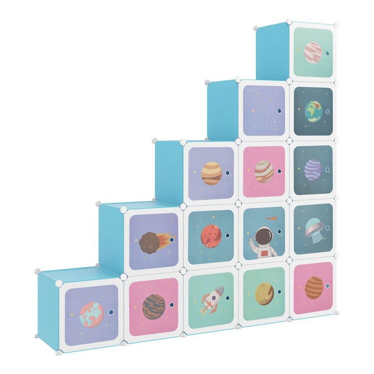 vidaXL キューブ収納キャビネット 子ども向け キューブ15点 ブルー PP製 家事用品 収納 オーガナイザー 衣類 ワードローブ収納 シューズラック 整理収納