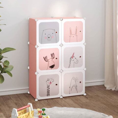 vidaXL キューブ収納キャビネット 子ども向け キューブ6点 ピンク PP製 家事用品 収納 オーガナイザー 衣類 ワードローブ収納 シューズラック 整理収納