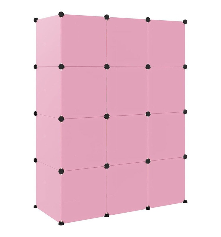 vidaXL キューブ収納キャビネット 子ども向け キューブ12点 ピンク PP製 家事用品 収納 オーガナイザー 衣類 ワードローブ収納 シューズラック 整理収納