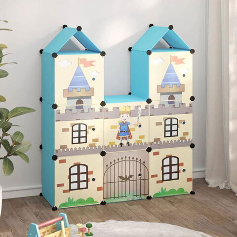 vidaXL キューブ収納キャビネット 子ども向け キューブ8点 ブルー PP製 家事用品 収納 オーガナイザー 衣類 ワードローブ収納 シューズラック 整理収納