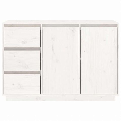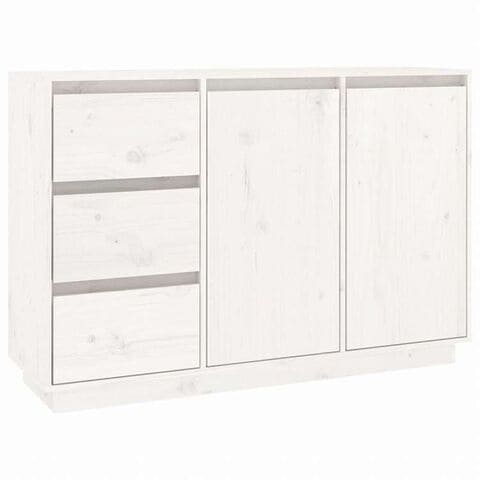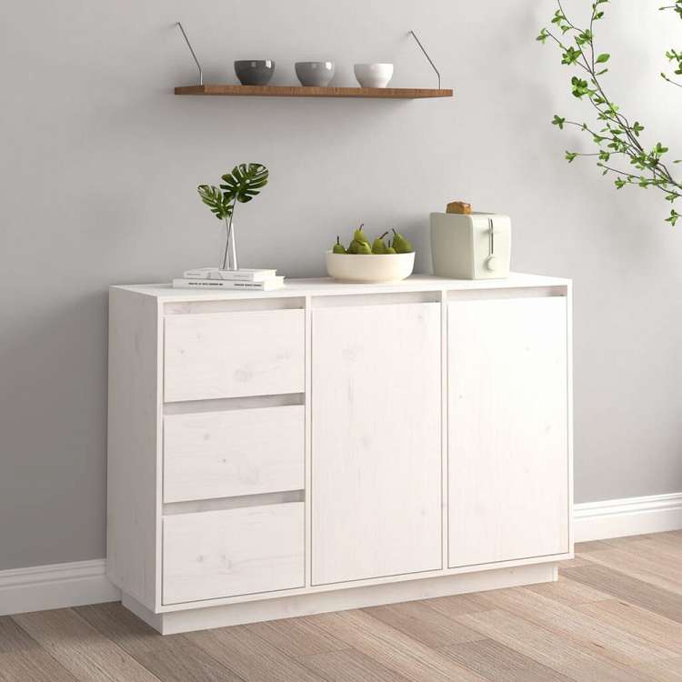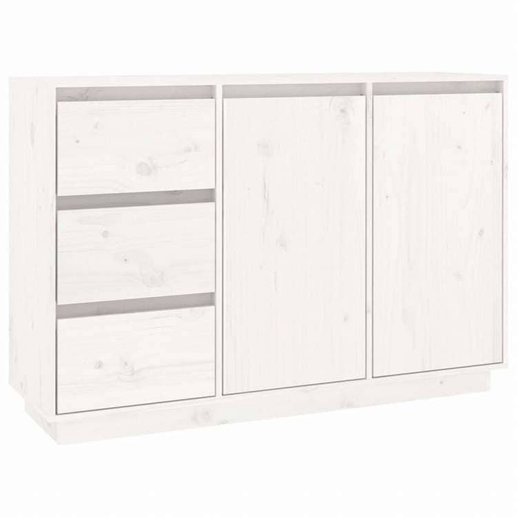 vidaXL サイドボード ホワイト 111x34x75 cm パイン無垢材家具 キャビネット&収納 サイドボード