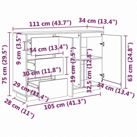 ■豊富な収納スペース: 2つの扉と3つの引き出しを備えたこのサイドキャビネットは、十分な収納スペースがあり、さまざまなアイテムをきちんと整理して手の届くところに収納できます。