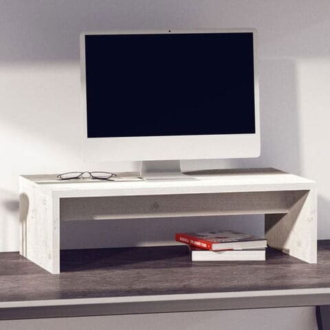 vidaXL モニタースタンド ホワイト 50x27x15 cm パイン無垢材家具AVラック・テレビ台