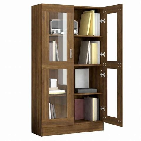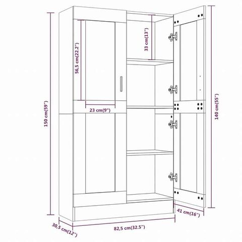 vidaXL ガラスキャビネット ブラウンオーク 82.5x30.5x150 cm エンジニアリングウッド家具 棚 本棚・オープンラック
