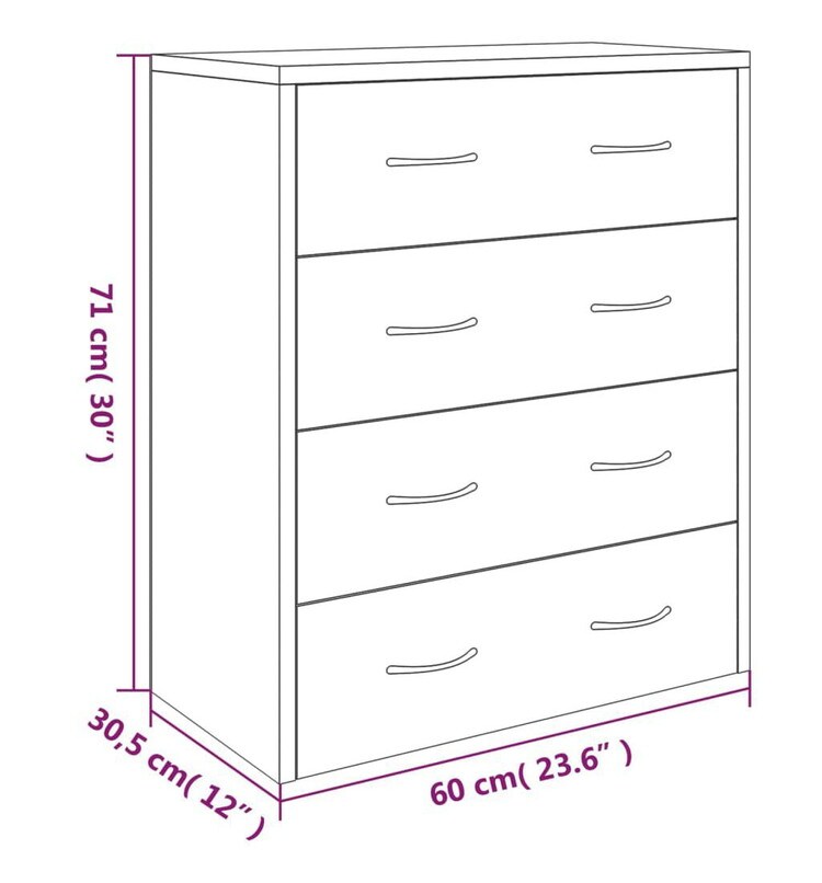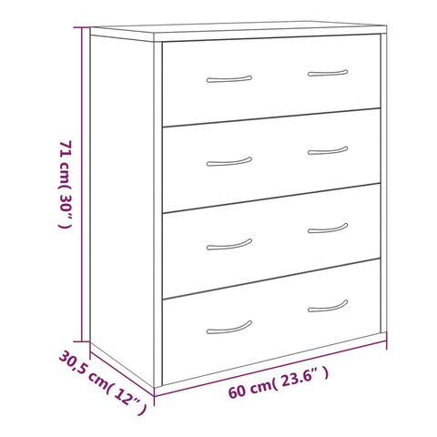 vidaXL サイドボード 引き出し4個付き 60×30.5×71cm ブラック 家具 キャビネット 収納 サイドボード