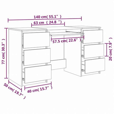vidaXL ライティングデスク ブラウンオーク 140x50x77cm エンジニアリングウッド家具 オフィス家具 デスク