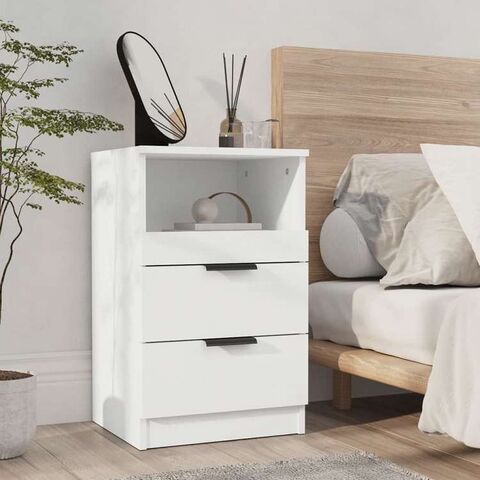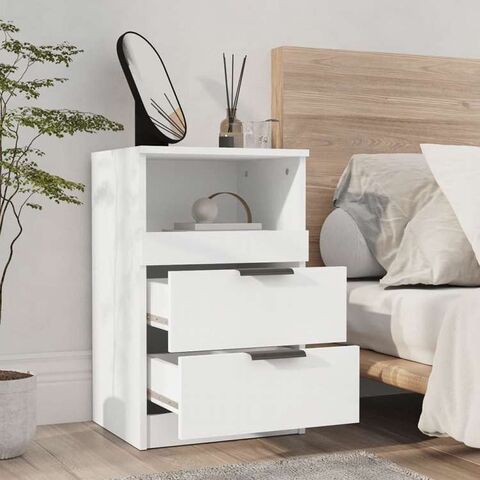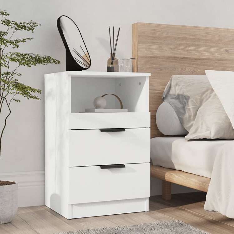 vidaXL ベッドサイドキャビネット ホワイト エンジニアリングウッド家具 テーブル ベッドサイドテーブル