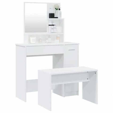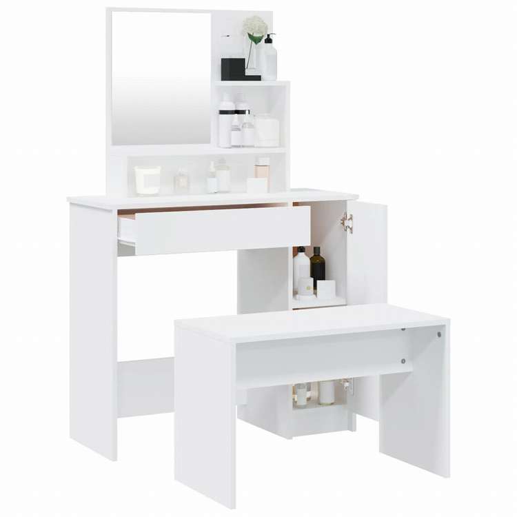 vidaXL ドレッシングテーブルセット ホワイト 86.5x35x136cm家具 キャビネット&収納 洗面・化粧台ユニット 寝室用化粧用テーブル