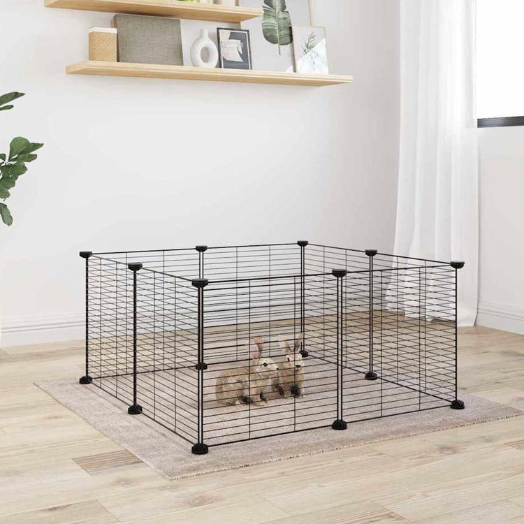vidaXL 8パネルペットケージ ブラック 35x35 cm スチール動物&ペット用品ペット用品小動物用品小動物 飼育・ケージ