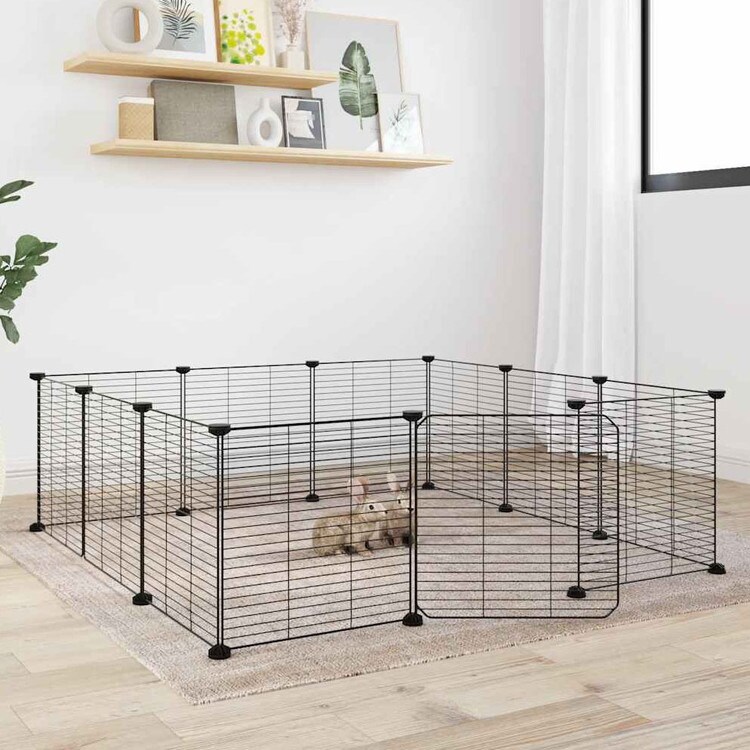 vidaXL 12パネルペットケージ ドア付 ブラック 35x35cm スチールAnimals & Pet Suppliesペット用品小動物用品小動物 飼育・ケージ