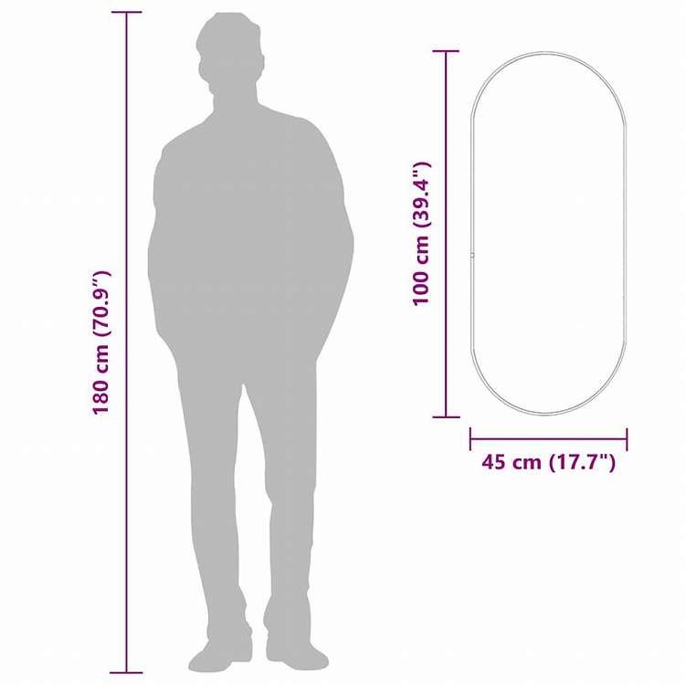 vidaXL 壁取り付け式ミラー ブラック 100x45 cm オーバルホーム&ガーデン デコレーション 鏡