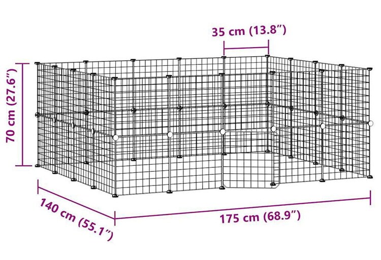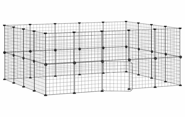 vidaXL ペットケージ パネル36枚 扉付き ブラック 35x35cm スチール動物&ペット用品ペット用品小動物用品小動物 飼育・ケージ