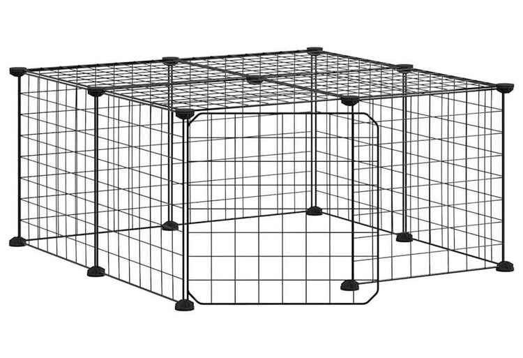 vidaXL 12パネルペットケージ ドア付 ブラック 35x35cm スチール動物&ペット用品ペット用品小動物用品小動物 飼育・ケージ