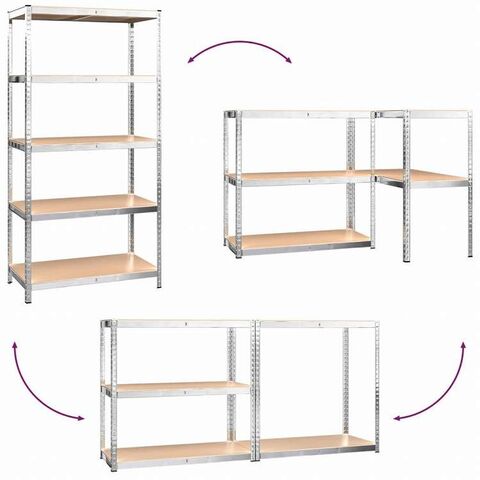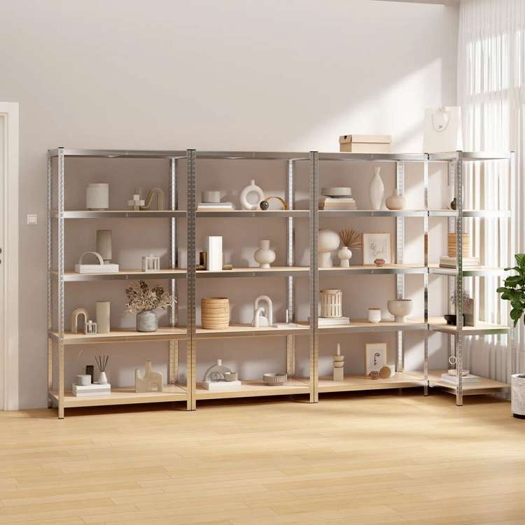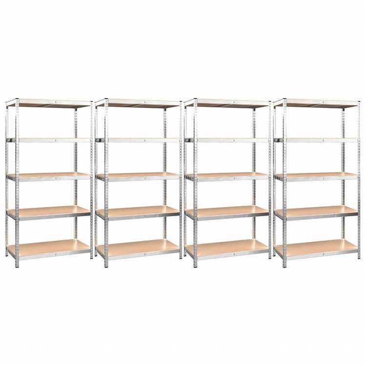 vidaXL 5段シェルフ 4点 シルバー スチール&エンジニアリングウッドビジネス&工業用 工業用収納 業務用収納棚