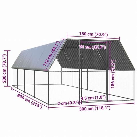 vidaXL 屋外鶏小屋 3x8x2m 亜鉛メッキ鋼製Animals & Pet Supplies ペット用品 小動物用品 小動物 飼育・ケージ