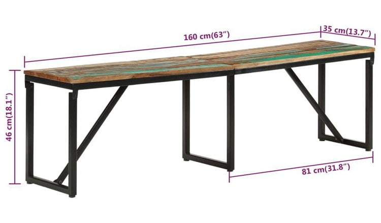 vidaXL ベンチ 160x35x46 cm 再生無垢材家具ベンチ倉庫・通路用ベンチ