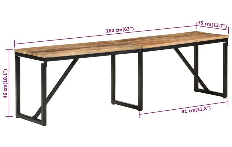 vidaXL ベンチ 160x35x46 cm マンゴー無垢材家具ベンチ倉庫・通路用ベンチ