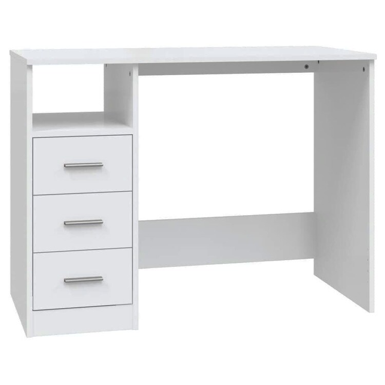 光沢感があり、モダンなデザインの引き出し付きデスクですから、勉強部屋や仕事場にエレガントな雰囲気を演出してくれます。耐久性のある素材:滑らかな表面が特徴的な高品質のエンジニアリングウッドを使用。強度や安定性にも優れ、耐湿性も備えています。豊富な収納スペース:このオフィスデスクには3つの引き出しとオープン収納スペースが備わっており、本やファイル、その他の便利なアイテムなどの学習用品を整理して手の届くところに置いておくための収納スペースがたっぷりあります。幅広い用途:小さなオフィスや寮のスペース、スペースが限られたお家、または単にスペースを管理したい場合にも最適なコンピューターデスクです。お手入れが簡単な表面:このスタンディングデスクは、湿らせた布で簡単にお手入れできます。注意:転倒防止のため、必ず付属の壁掛け金具をお使いください。注:各商品に組み立て説明書が付属しており、簡単に組み立てることができます。