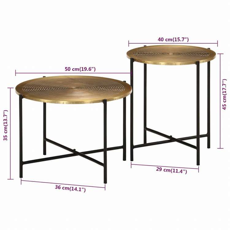 vidaXL コーヒーテーブル 2点セット 真鍮&ブラックメタル家具 テーブル アクセントテーブル コーヒーテーブル