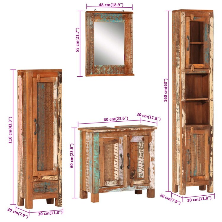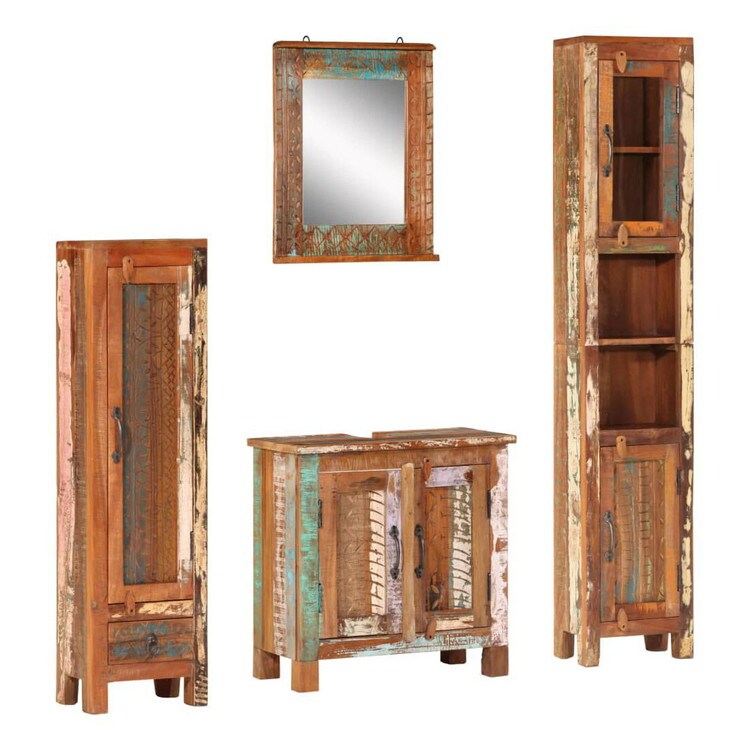 vidaXL バスルーム家具4点セット 再生無垢材 家具 家具セット バスルーム家具セット