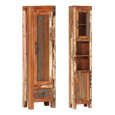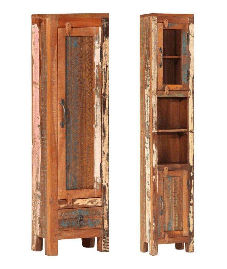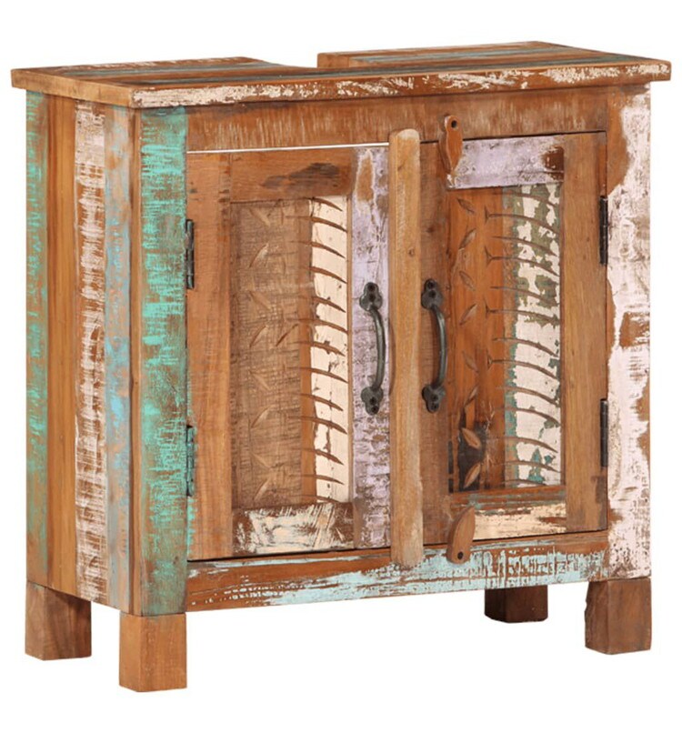 容量たっぷりの収納スペースを備えた木製バスルーム家具セットです。浴室エリアを清潔感に溢れ、印象的な空間へと変身させます。再生無垢材:再生無垢材は、チーク材、マンゴー材、パイン材、ブナ材などの再利用木材で構成されています。これらの材料は、工場、小屋、ボートなどの古い建物からリサイクルされます。一点一点手作りのため、色は商品ごとに異なります。追加の収納:バスルームキャビネットは、バスルームの必需品を収納するのに便利です。洗面キャビネットの上部は、洗面ボウルを置くのにぴったりです。実用的なミラー:付属の鏡を使って毎日の身だしなみを整えることができます。また家のインテリアにもぴったりです。