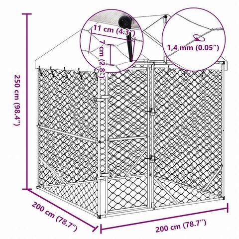 vidaXL 屋外犬小屋 屋根付き シルバー 2x2x2.5 m 亜鉛メッキ鋼製動物&ペット用品 ペット用品 犬用品 犬小屋・ドッグラン