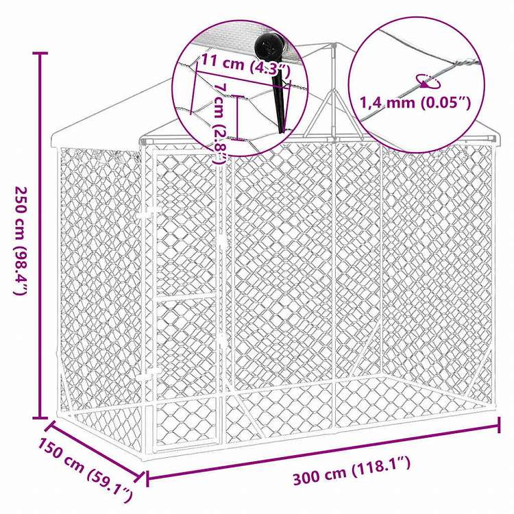 vidaXL 屋外犬小屋 屋根付き シルバー 3x1.5x2.5 m 亜鉛メッキ鋼製動物&ペット用品 ペット用品 犬用品 犬小屋・ドッグラン