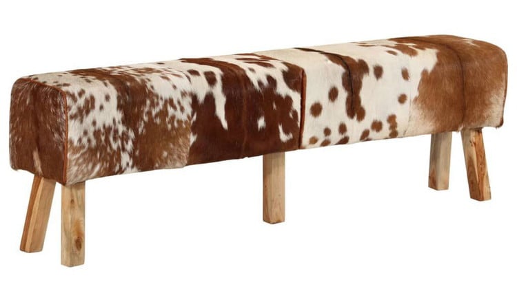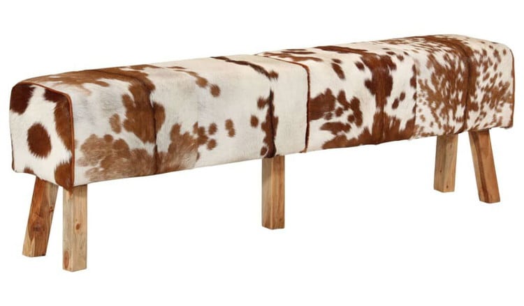 vidaXL ベンチ ブラウン&ホワイト 160x28x50 cm 本山羊革製家具ベンチ倉庫・通路用ベンチ