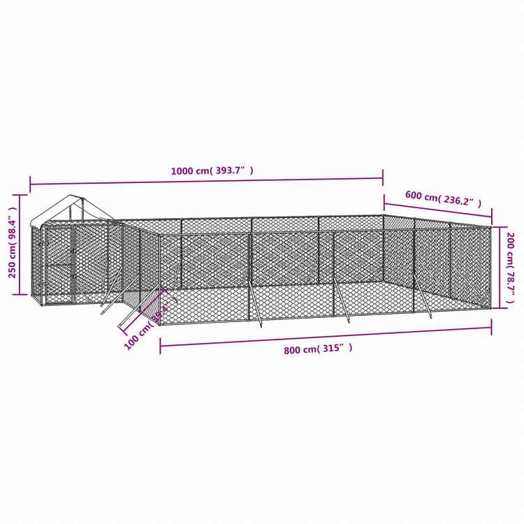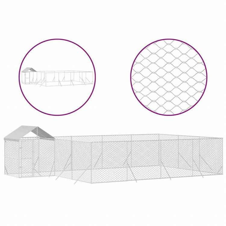 vidaXL 屋外犬小屋 屋根付き シルバー 10x6x2.5 m 亜鉛メッキ鋼製動物&ペット用品 ペット用品 犬用品 犬小屋・ドッグラン