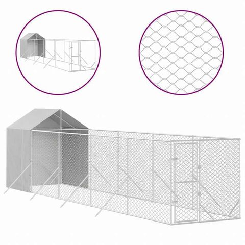 vidaXL 屋外犬小屋 屋根付き シルバー 2x10x2.5 m 亜鉛メッキ鋼製動物&ペット用品 ペット用品 犬用品 犬小屋・ドッグラン