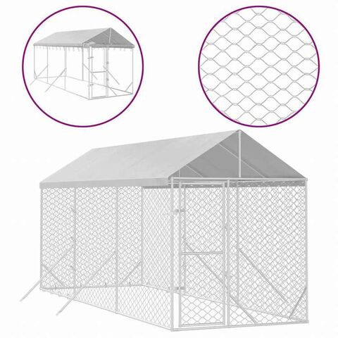 vidaXL 屋外犬小屋 屋根付き シルバー 2x6x2.5 m 亜鉛メッキ鋼製動物&ペット用品 ペット用品 犬用品 犬小屋・ドッグラン