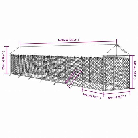 vidaXL 屋外犬小屋 屋根付き シルバー 2x14x2.5 m 亜鉛メッキ鋼製Animals & Pet Supplies ペット用品 犬用品 犬小屋・ドッグラン