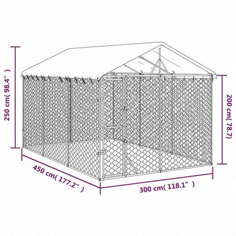vidaXL 屋外犬小屋 屋根付き シルバー 3x4.5x2.5 m 亜鉛メッキ鋼製動物&ペット用品 ペット用品 犬用品 犬小屋・ドッグラン
