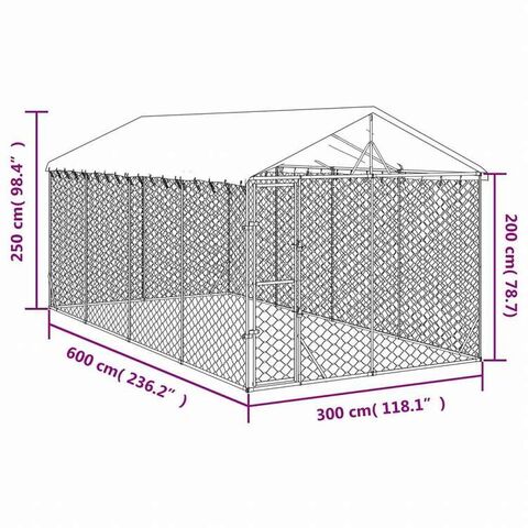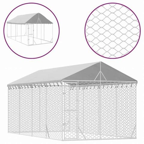 vidaXL 屋外犬小屋 屋根付き シルバー 3x6x2.5 m 亜鉛メッキ鋼製動物&ペット用品 ペット用品 犬用品 犬小屋・ドッグラン