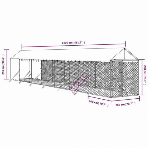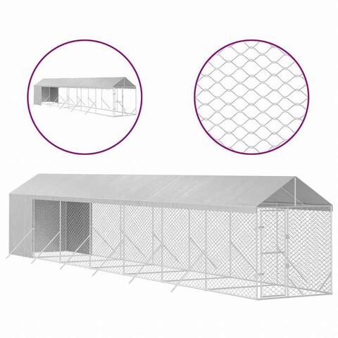 vidaXL 屋外犬小屋 屋根付き シルバー 2x14x2.5 m 亜鉛メッキ鋼製動物&ペット用品 ペット用品 犬用品 犬小屋・ドッグラン