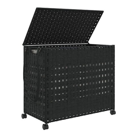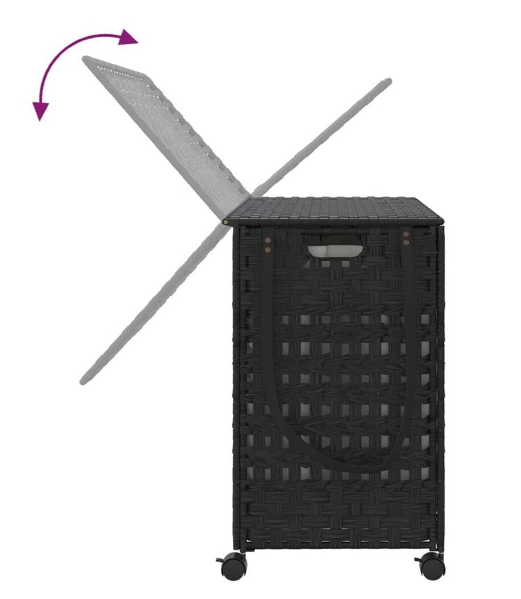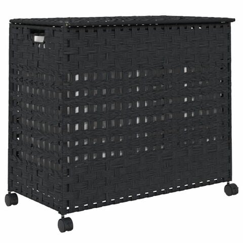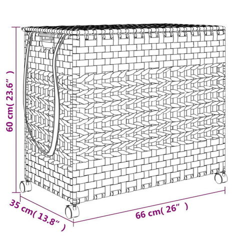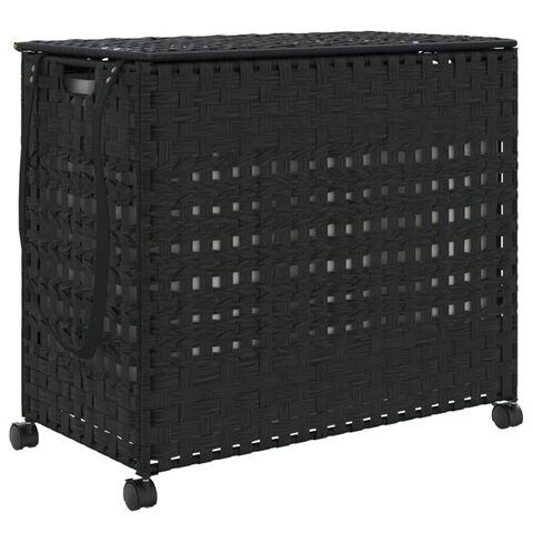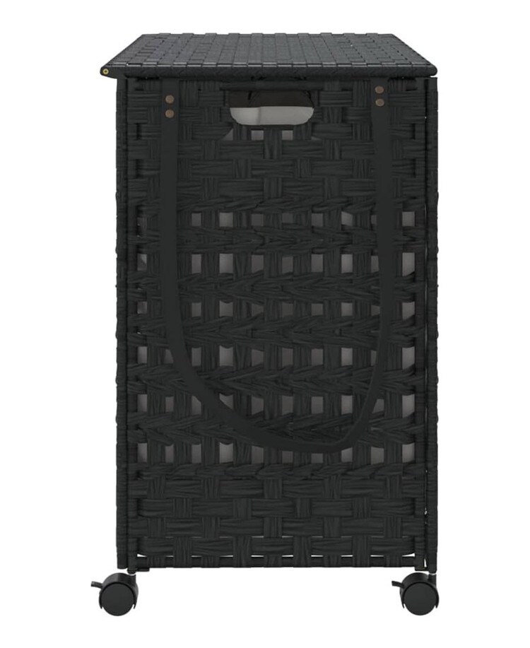 vidaXL ランドリーバスケット キャスター付き ブラック 66x35x60cm ラタンホーム&ガーデン家事用品ランドリー用品洗濯かご