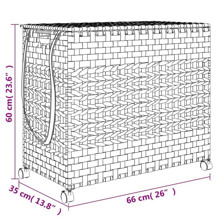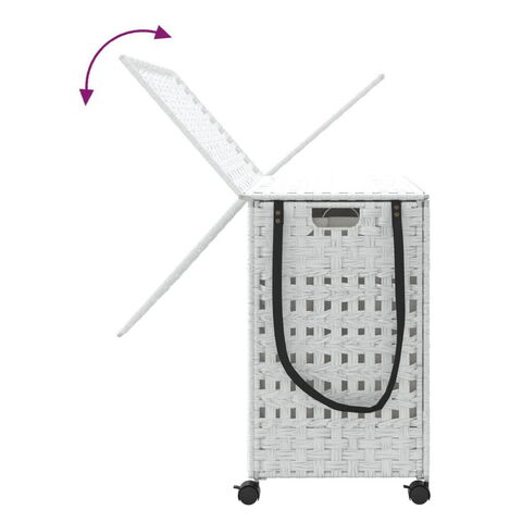 vidaXL ランドリーバスケット キャスター付き ホワイト 66x35x60cm ラタンホーム&ガーデン家事用品ランドリー用品洗濯かご