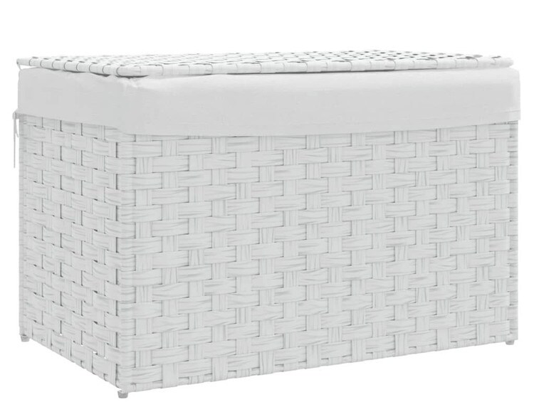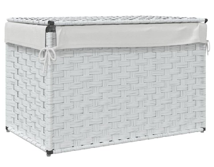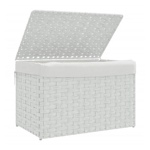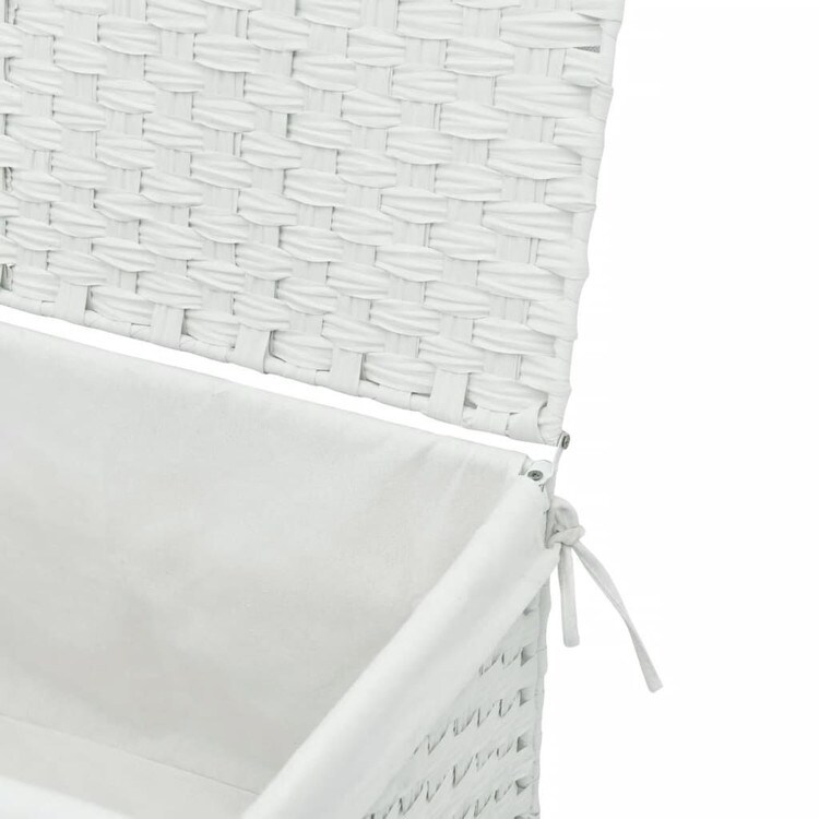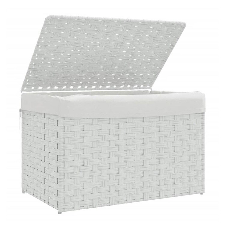vidaXL ランドリーバスケット ふた付き ホワイト 55.5x35x34 cm ポリラタンホーム&ガーデン家事用品ランドリー用品洗濯かご