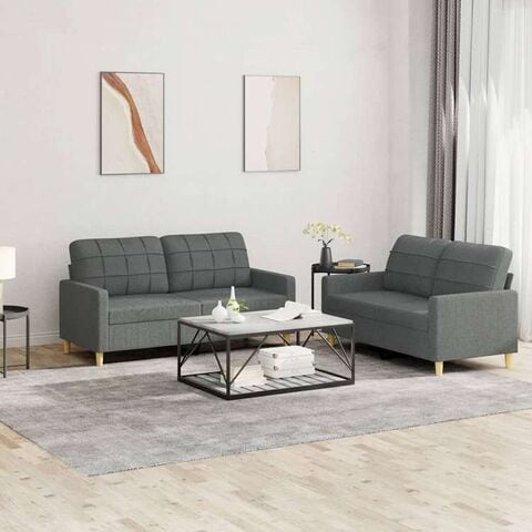 vidaXL ソファ2点セット クッション付 ダークグレー 布張り家具 ソファ