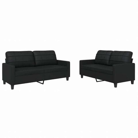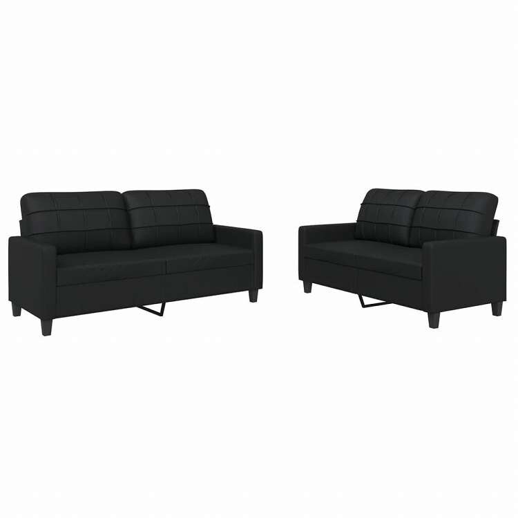 vidaXL ソファ2点セット クッション付 ブラック 合成皮革張り家具 ソファ