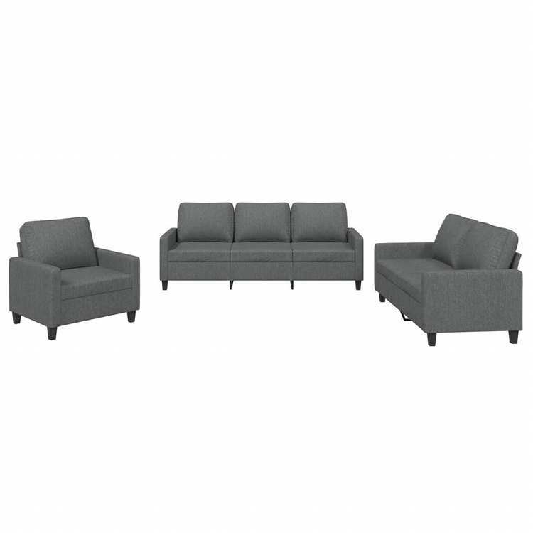 vidaXL ソファ3点セット クッション付 ダークグレー 布張り家具 ソファ