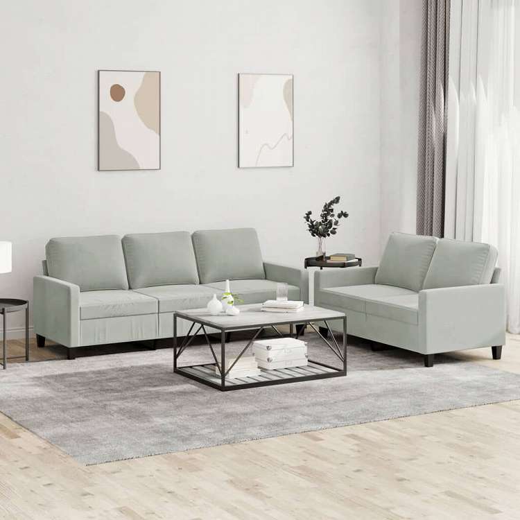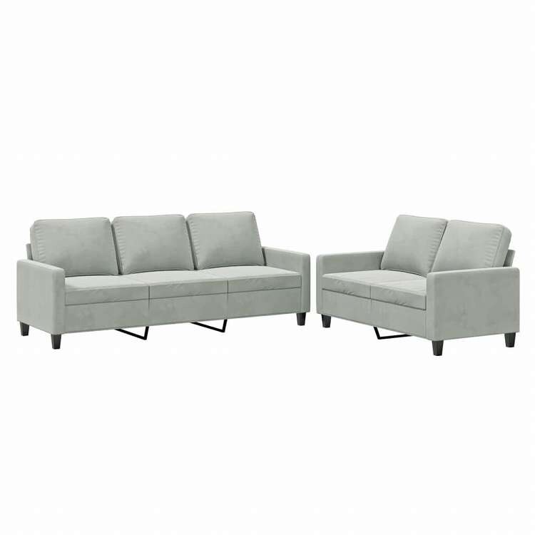 vidaXL ソファ2点セット クッション付 ライトグレー ベルベット家具 ソファ
