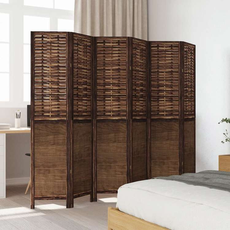 vidaXL パーティション 6枚パネルダークブラウン無垢材パウロウニア家具 間仕切り
